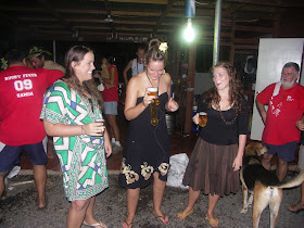 Since the theme for the run was Polynesian, the GM called forward all who had disobeyed and were not attired properly. These were Morten, Will, Adrian, Snake and our four Canadians. Snake was also nominated for a Indecent Behaviour Award, which he got amended to Conduct Becoming a Hashman Award.